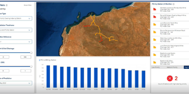 This Geospatial Application is a four-dimensional model of rail network that integrates asset data from multiple systems. It also draws in time-enabled data such as historical defects and aerial imagery. This application reduces the time spent on track and maintenance planning.